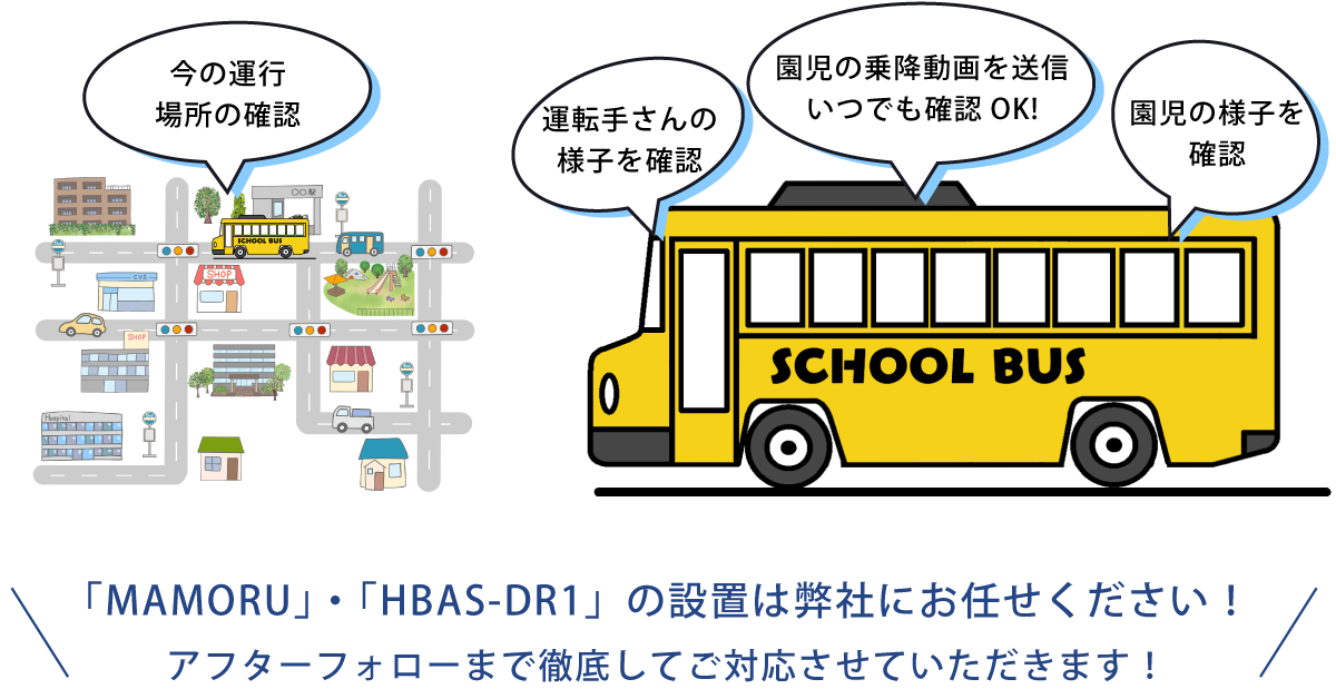 HBAS-DR1をプラスすると現状の園児、ドライバーの状況を正確に認知することができ、安全記録としても保管することができます。